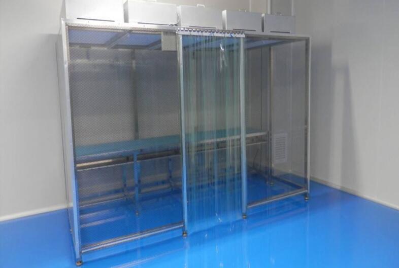 潔凈層流罩FFU及高效過濾器放置在由放在不銹網(wǎng)支架支撐棚架的托框上。頂部由盲板鋪蓋,密縫嚴(yán)密,四周用防靜電簾圍縫,四周底部利用正壓自然排風(fēng)等形式,使?jié)崈襞飬^(qū)內(nèi)潔凈度達(dá)到1000級。潔凈棚其具有安裝快速、施工周期短、價格低廉、移動方便等特點,,如流水線作業(yè)區(qū)域,高精確度產(chǎn)品組裝區(qū)。