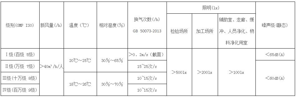 4、按照生產工藝和衛生、質量要求,劃分潔凈級別,具體級別及要求。