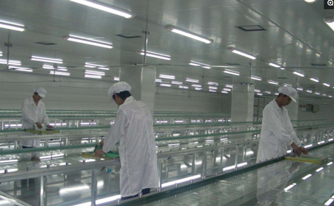 生產車間內所有的間隔墻壁全部采用夾芯彩鋼板構建;生產車間內側墻壁從地面起貼2厘米的白色瓷磚,其余的用白色涂料覆涂縫隙,墻壁與地面交界面沒有死角,為漫彎形展現。