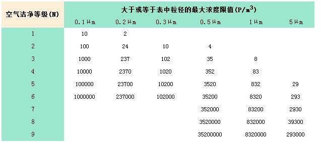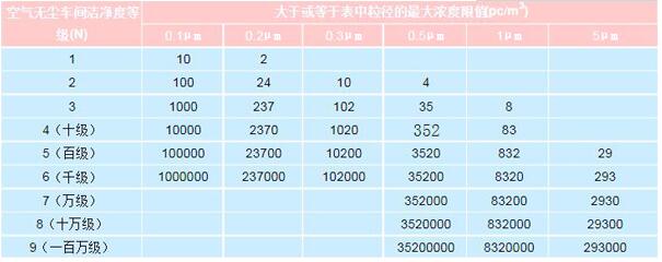 國家潔凈室等級標準