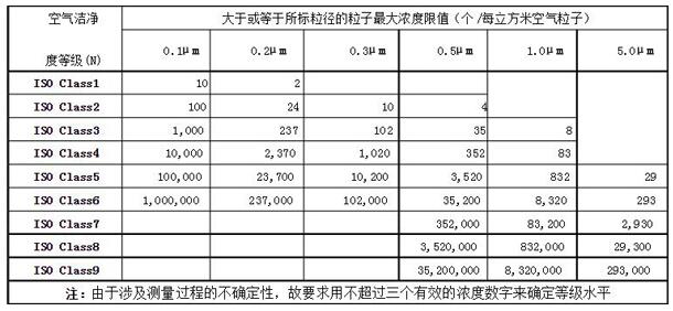 空氣無塵車間潔凈度分級標準:ISO14644-1(國際標準)