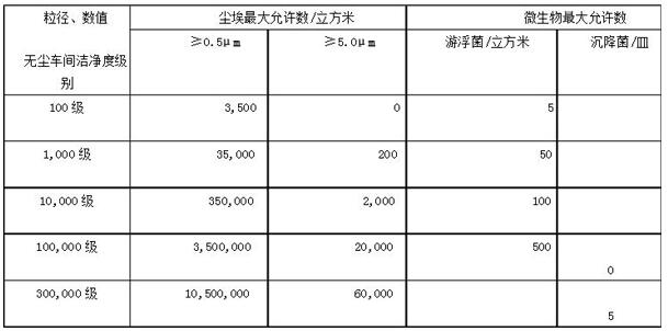 中國藥品生產潔凈室(區)的空氣無塵車間潔凈度標準