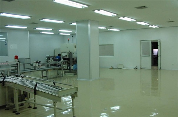 3、地面、墻面、頂面及門窗:食品廠房的地面要用防滑、不滲水、易清潔、耐腐蝕的材料鋪制,車間地面表面要平坦,不積水。車間整個地面的水平在設計和建造時應該比廠區的地面水平略高,地面有的斜坡度。
